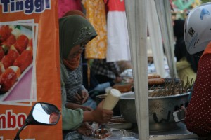 Dua-tiga hari menjelang berakhirnya bulan suci Ramadhan 1433 H ini, saya sempat berburu menu buka puasa atau takjil di dua lokasi di daerah Jogja yaitu di pasar sore Ramadhan Kauman, dan di kampung Ramadhan, Jogokaryan. Kedua lokasi ini secara khusus dirubah menjadi pasar tiban dan hanya ada selama bulan puasa. Dan saya sempat menyaksikan beberapa kali, kedua pasar tiban ini pernah diliput dan ditayangkan oleh beberapa stasiun TV swasta.
