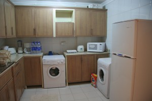 Dapur adalah salah satu ruangan yang sering saya kunjungi, karena saya sering memasak sendiri. Apartemen dengan dapur yang representatif adalah suatu keharusan untuk saya. Flat saya ini dilengkapi dengan dapur berukuran kurang lebih 2x4m. Lemari es, mesin cuci, mesin pengering, kompor listrik, toaster, microwave, coffee maker, juicer, gelas, piring, dan peralatan dapur lainnya sudah disiapkan. Mungkin nanti kalau ingin menambah peralatan-peralatan dapur yang lainnya tinggal dilengkapi dan beli sendiri. Tentu saja bisa diklaim hehe. Bagi saya dapur dengan ukuran seperti ini sudah lebih dari cukup.