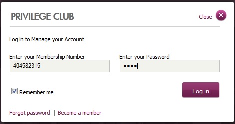 - Kemudian klik “Login to Privilege Club” seperti yang dalam lingkaran warna merah di atas. Windows login seperti dibawah ini akan muncul