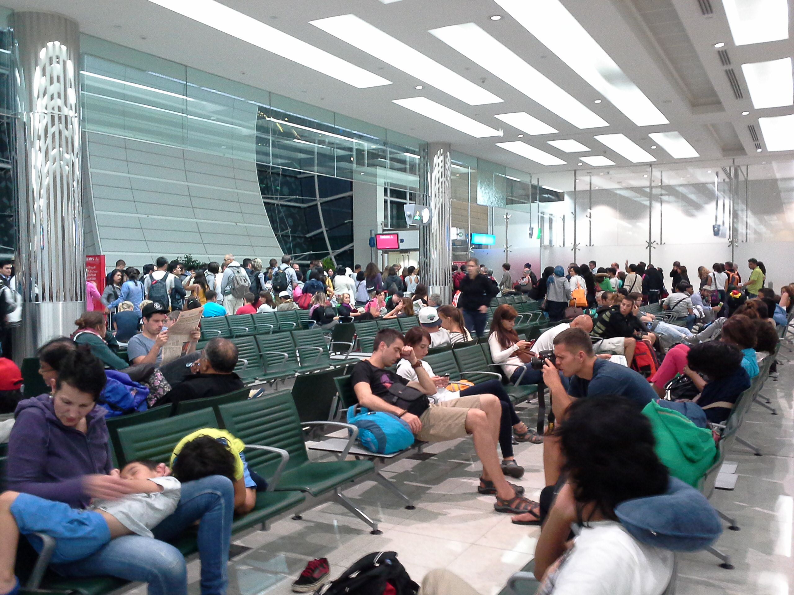 Pesawat Emirates dari Kuwait jadwal kerangkatan jam 22.30. Waktu berbuka puasa di Kuwait pada tanggal 1 Agustus 2013 jatuh pada jam 18.43. Praktis tidak ada waktu banyak untuk menikmati buka puasa. Saya hanya sempat minum teh hangat dan beberapa biji kurma sebagai menu buka puasa, sesudahnya langsung berangkat ke bandara. Sesampai di bandara, sambil menunggu waktu boarding, saya dan Dodi mampir ke salah satu konter resto yang ada di dalam terminal keberangkatan bandara internasional Kuwait. Ternyata Dodi juga hanya sempat berbuka puasa dengan teh hangat dan kolak. Sambil menikmati santap buka buasa di bandara, kami ngobrol ngalor-ngidul tentang apa saja. Tepat jam 22.30 pesawat Emirates terbang membawa kami berdua ke Dubai. Dari Dubai kami harus ganti pesawat Emirates yang lain yang terbang menuju Jakarta.